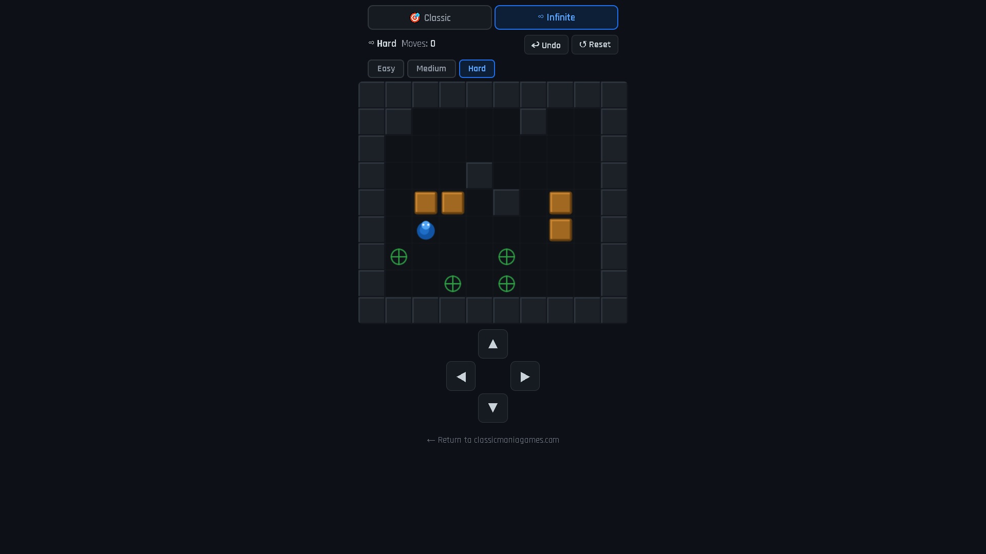 Usa las teclas de flecha o las teclas W, A, S, D para mover al personaje en las cuatro direcciones. La tecla Z o U deshace el último movimiento, y la tecla R reinicia el nivel desde el principio. Puedes deshacer tantos movimientos como necesites, no hay penalización.